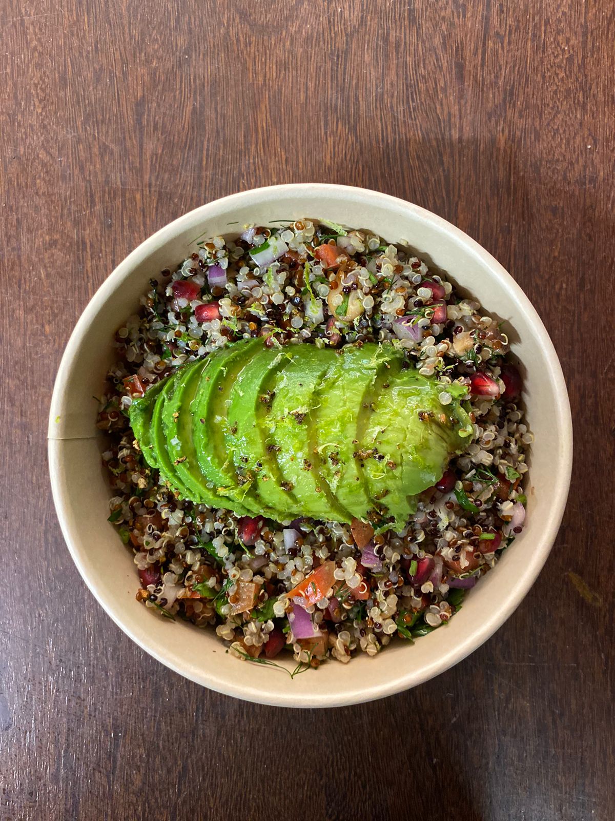 Quinoa, avocat tranché, brunoise de tom…