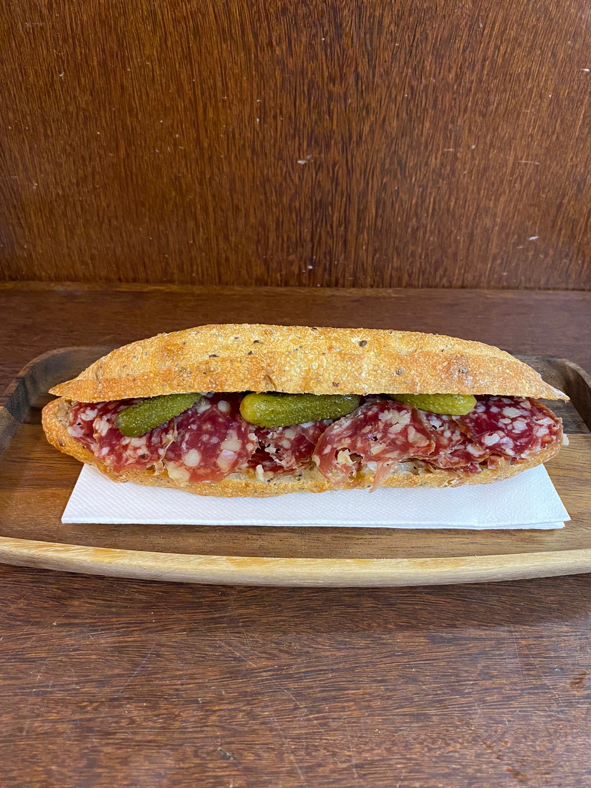 Baguette, rosette, beurre et cornichons