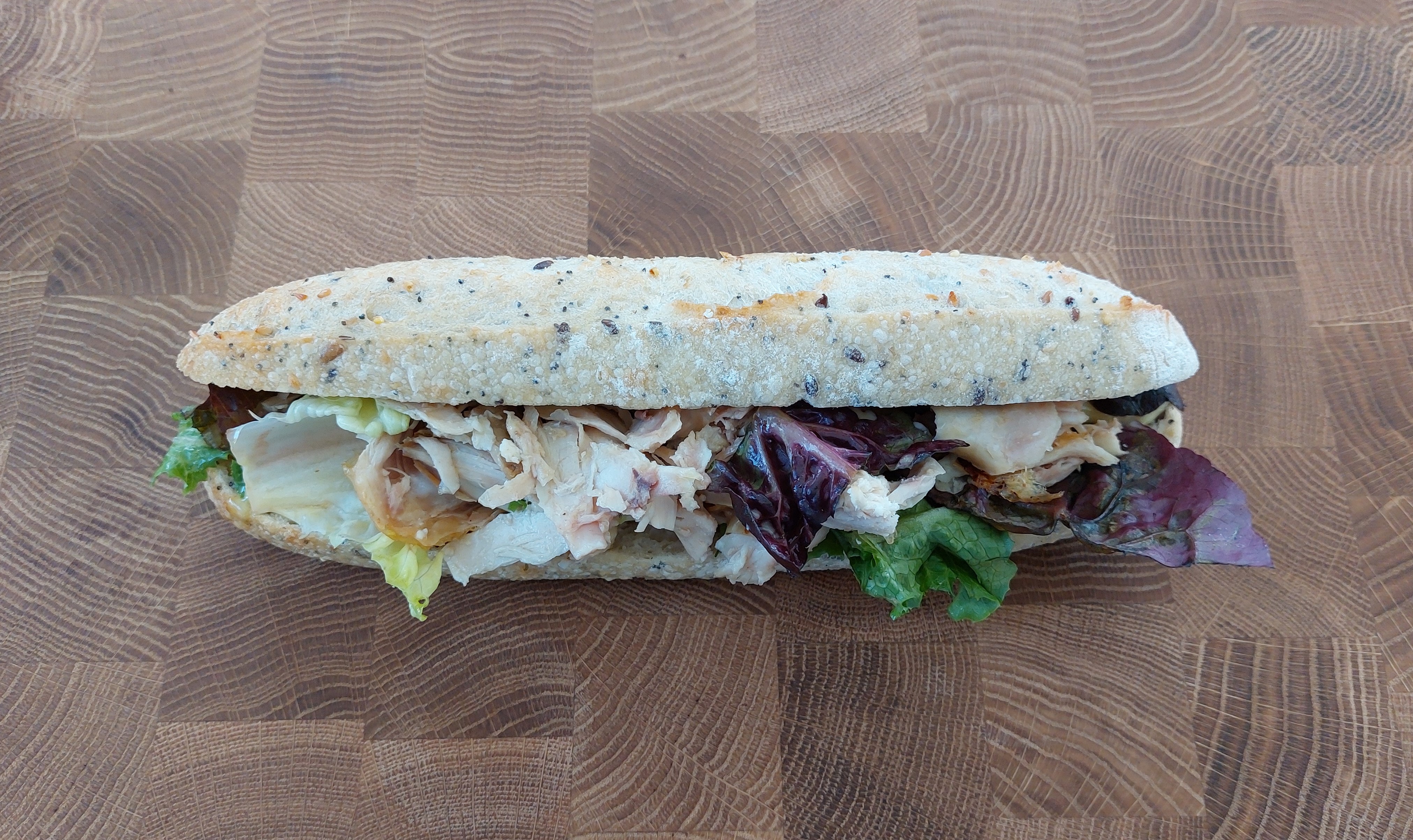 Baguette, blanc de poulet, salade, mayo…