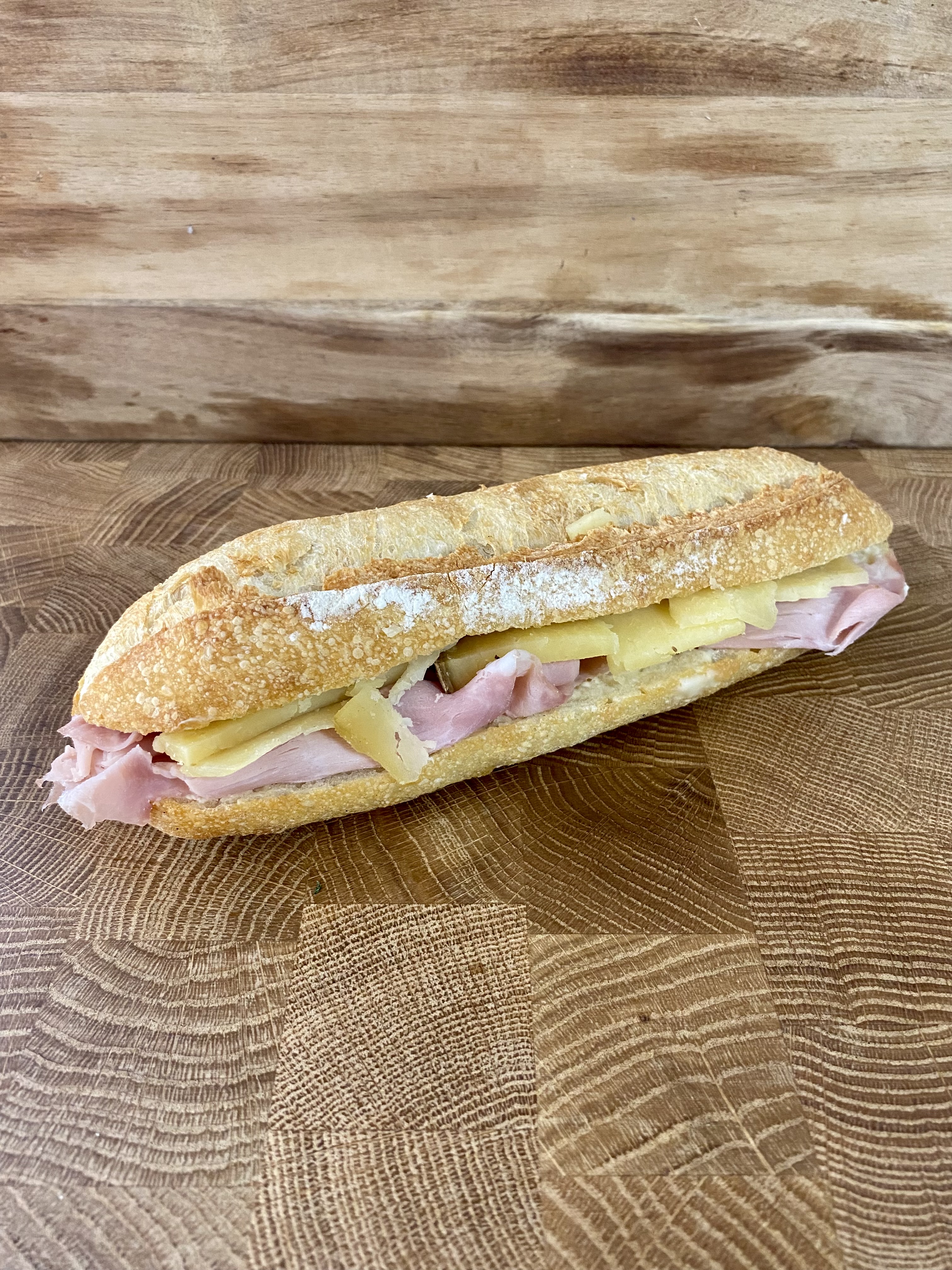 Baguette tradition, jambon blanc, cantal, beurre