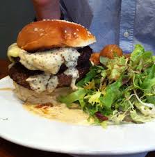 Fromage bleu ou chèvre, salade, tomate, oignon, pain burger, cornichon