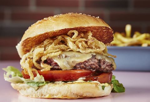 Cheddar, steak, salade, tomate, oignon,…