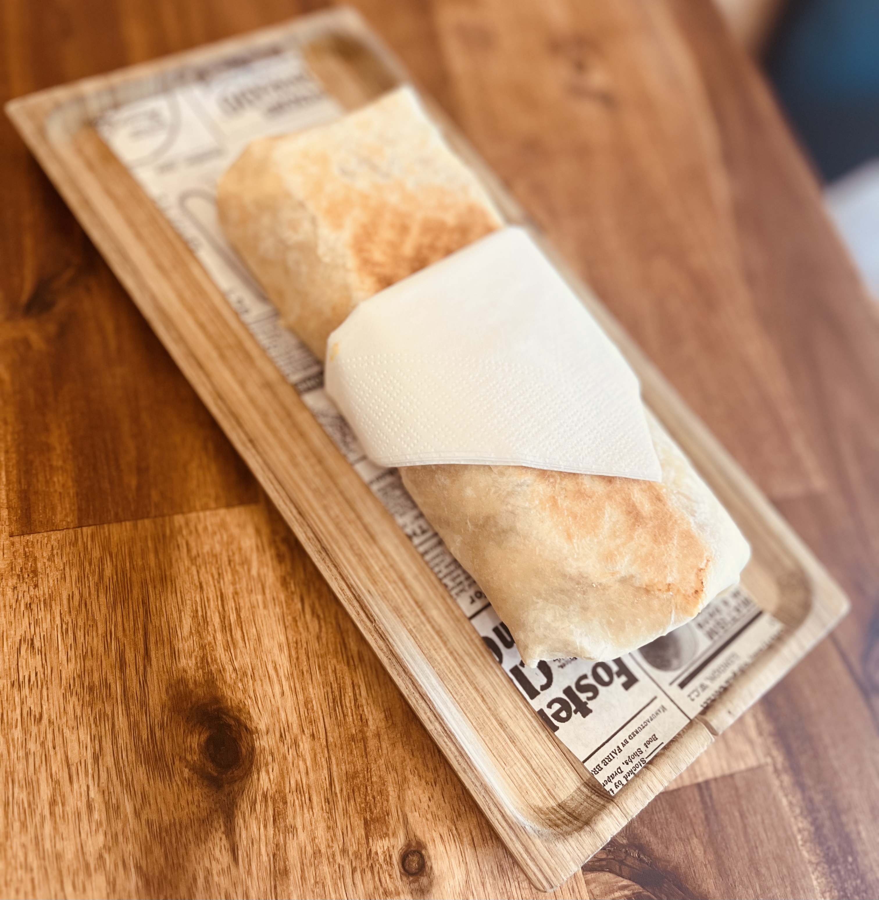 Tortilla de blé, riz préparé, cheddar, crème citron, boeuf chili