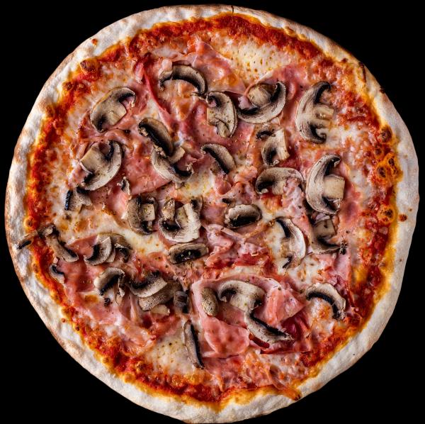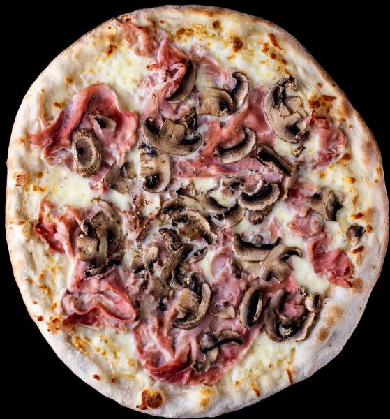 Mozzarella, jambon, champignons frais,…