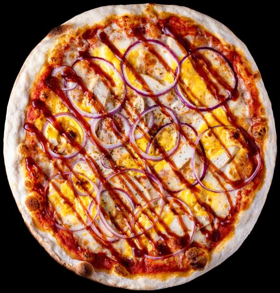 Mozzarella, poulet, oignons, cheddar, sauce BBQ, origan