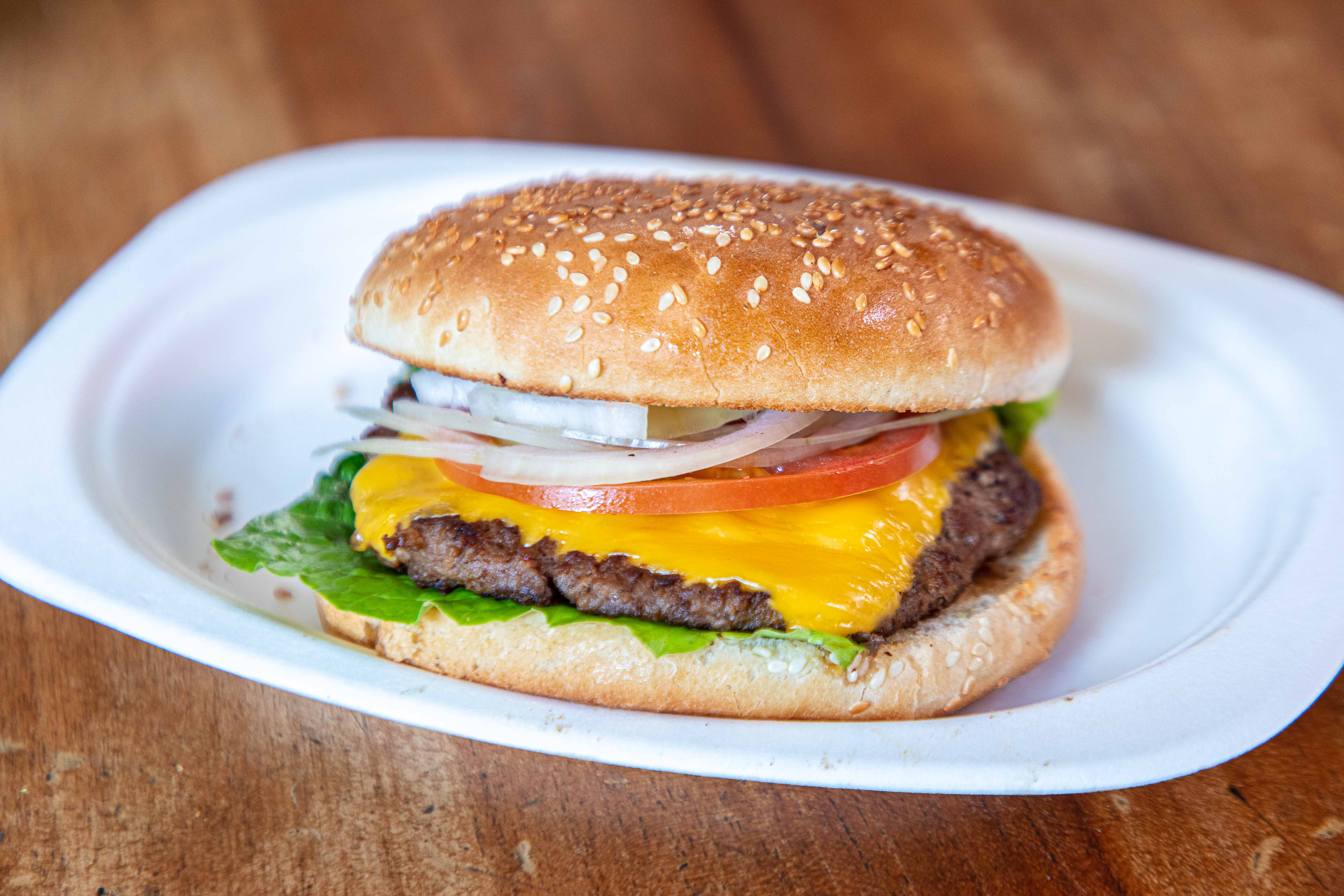 Steak Angus, oignons, tomate, salade, cheddar