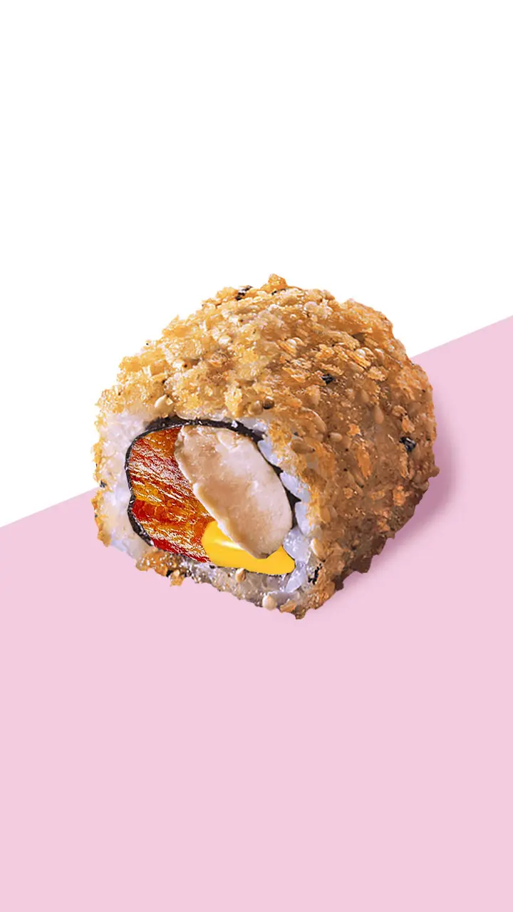 California Roll frit, poulet pané, bacon, cheddar, riz, nori, panko